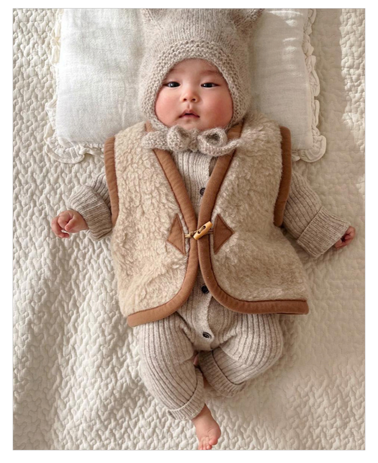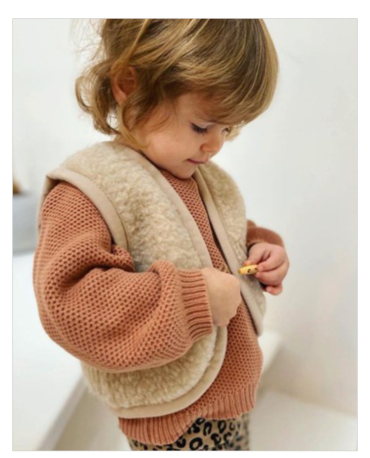 もこもこのボア素材が暖かく、可愛らしいベビー/キッズ用ベスト。