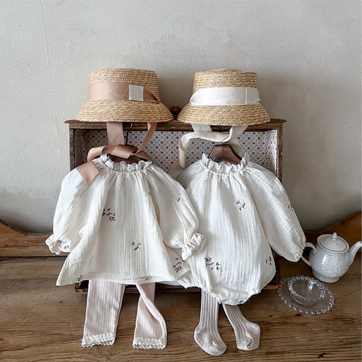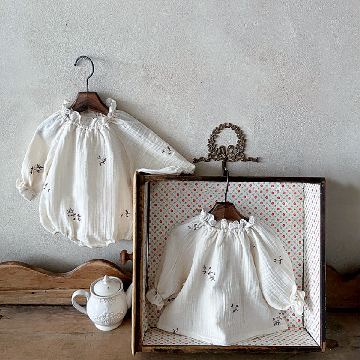 【兄弟コーデ】floral embroidered crinkle gauze romper
