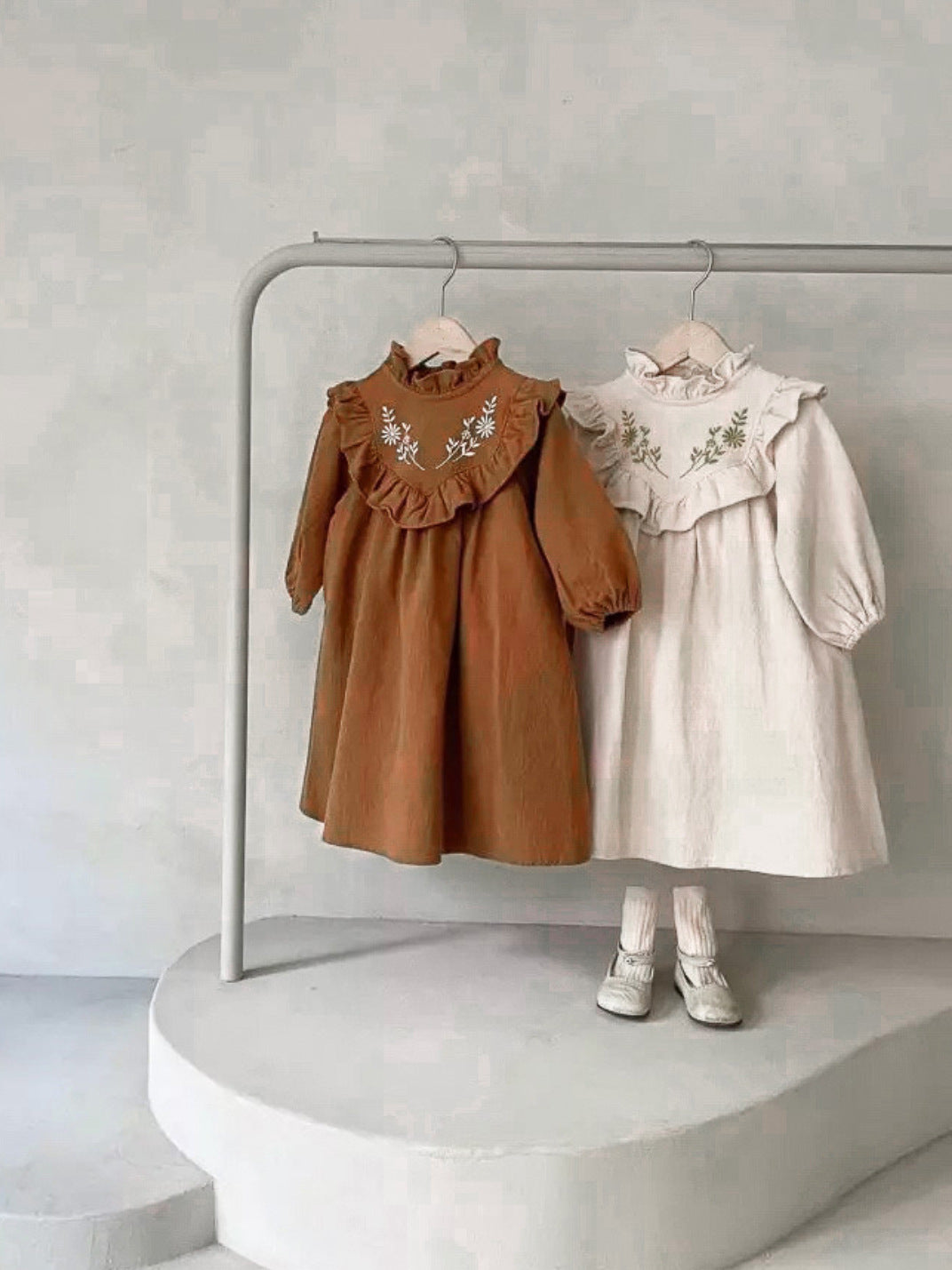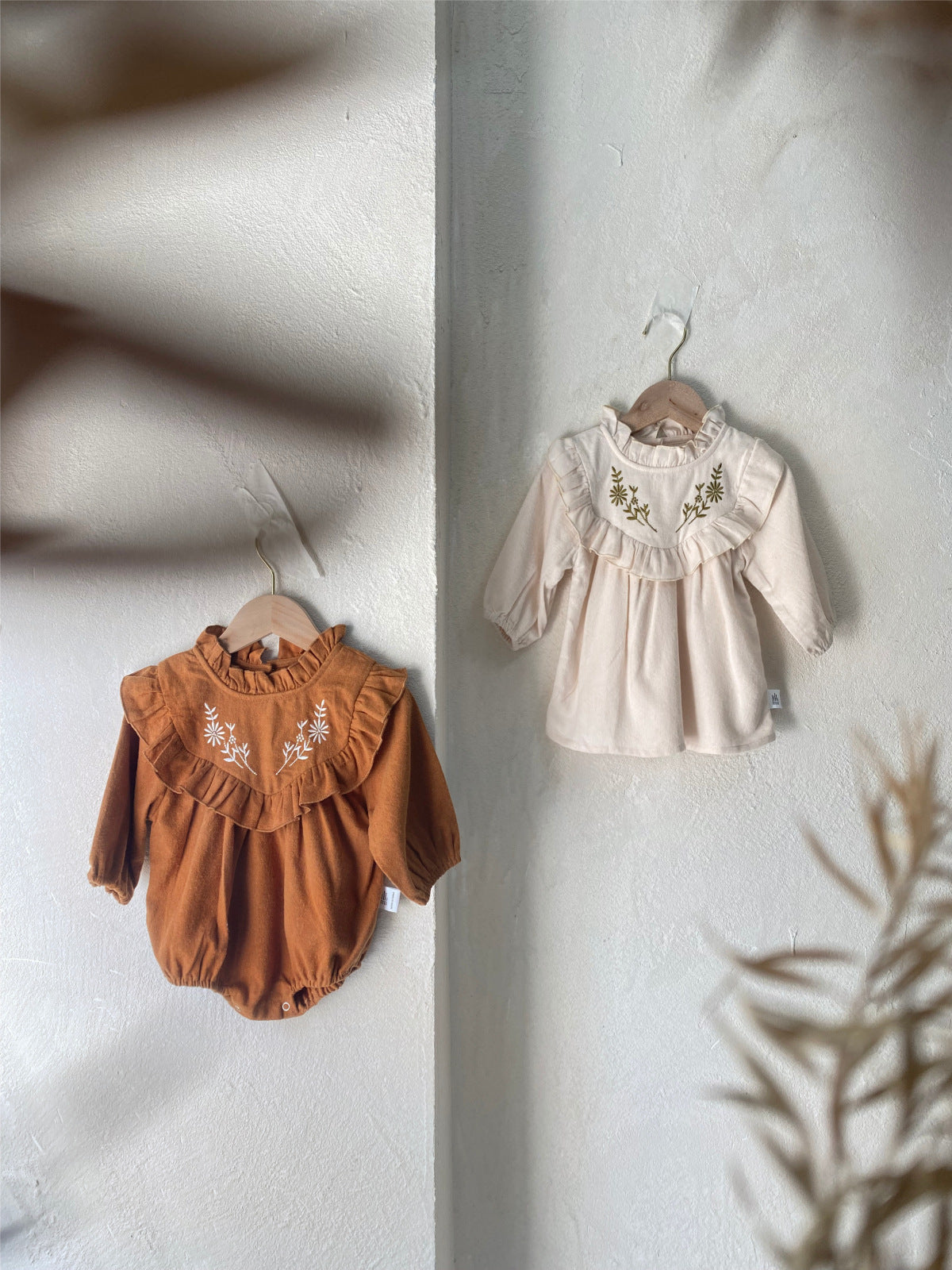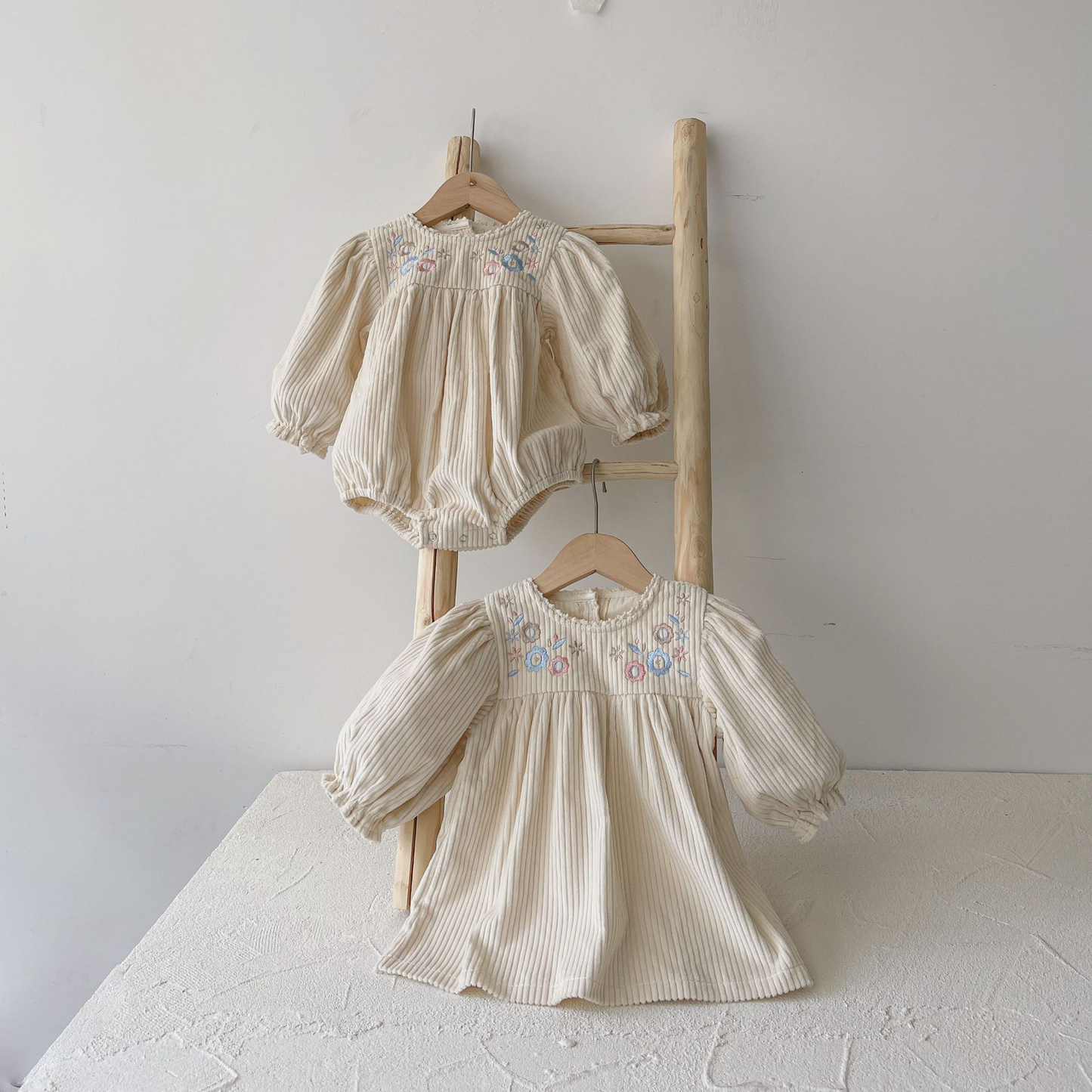 【姉妹コーデ】刺繍コーデュロイ長袖ワンピース&ロンパース(embroidered corduroy long sleeve dress / rompers)10312511