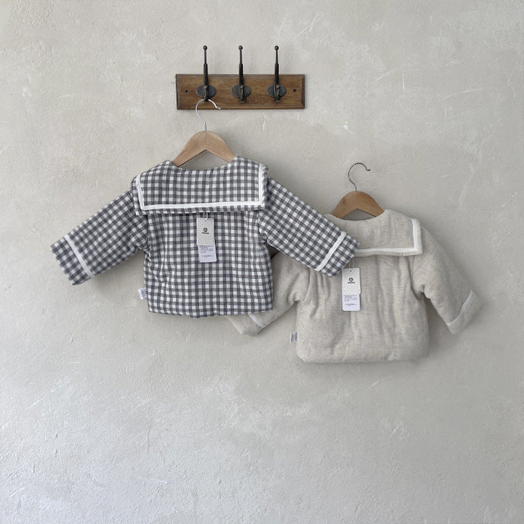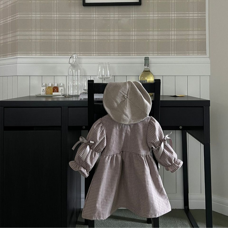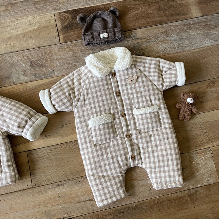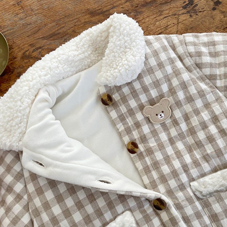 チェック柄ボア襟付きロンパース(check pattern boa collar padded romper)10422511