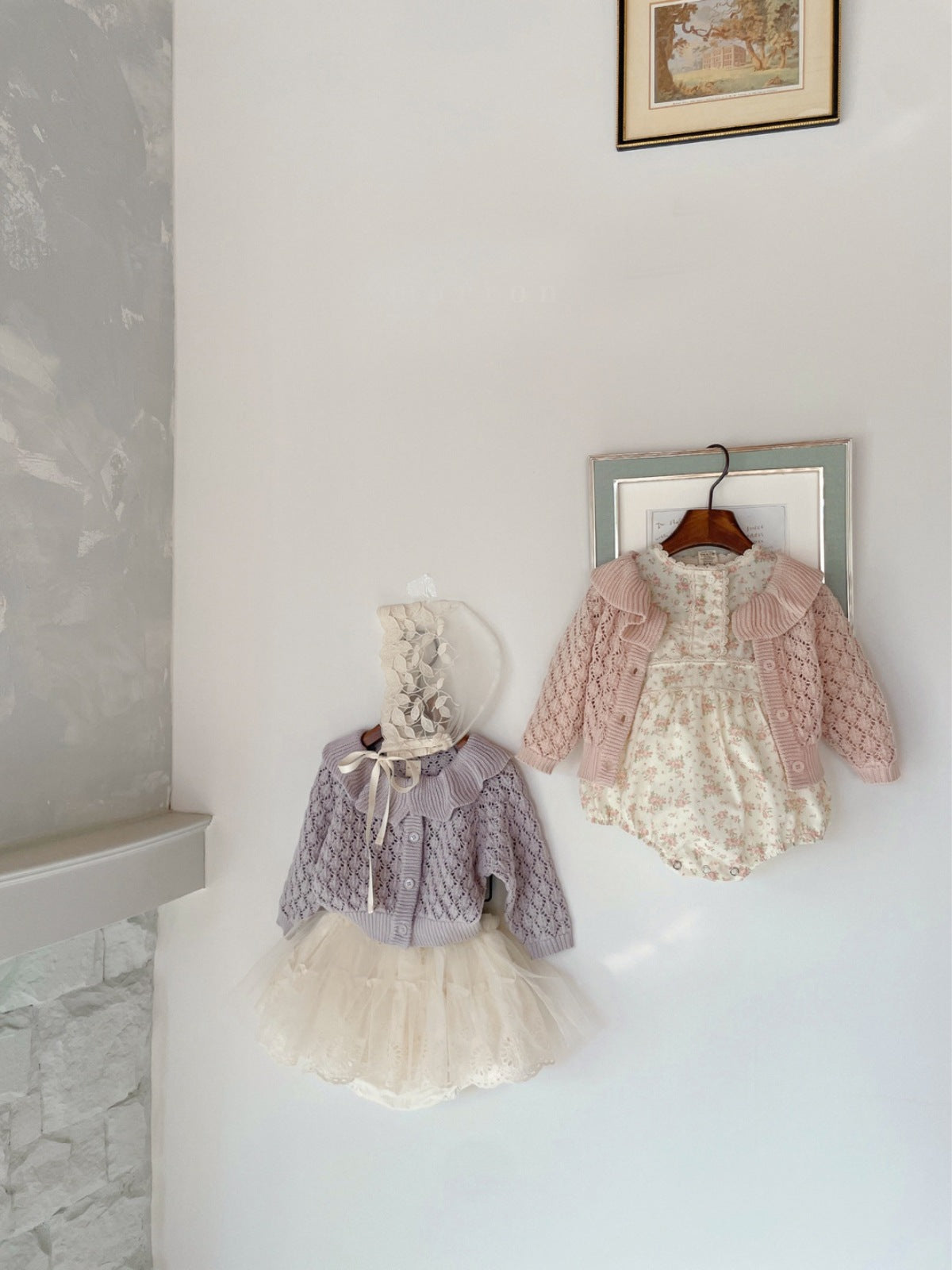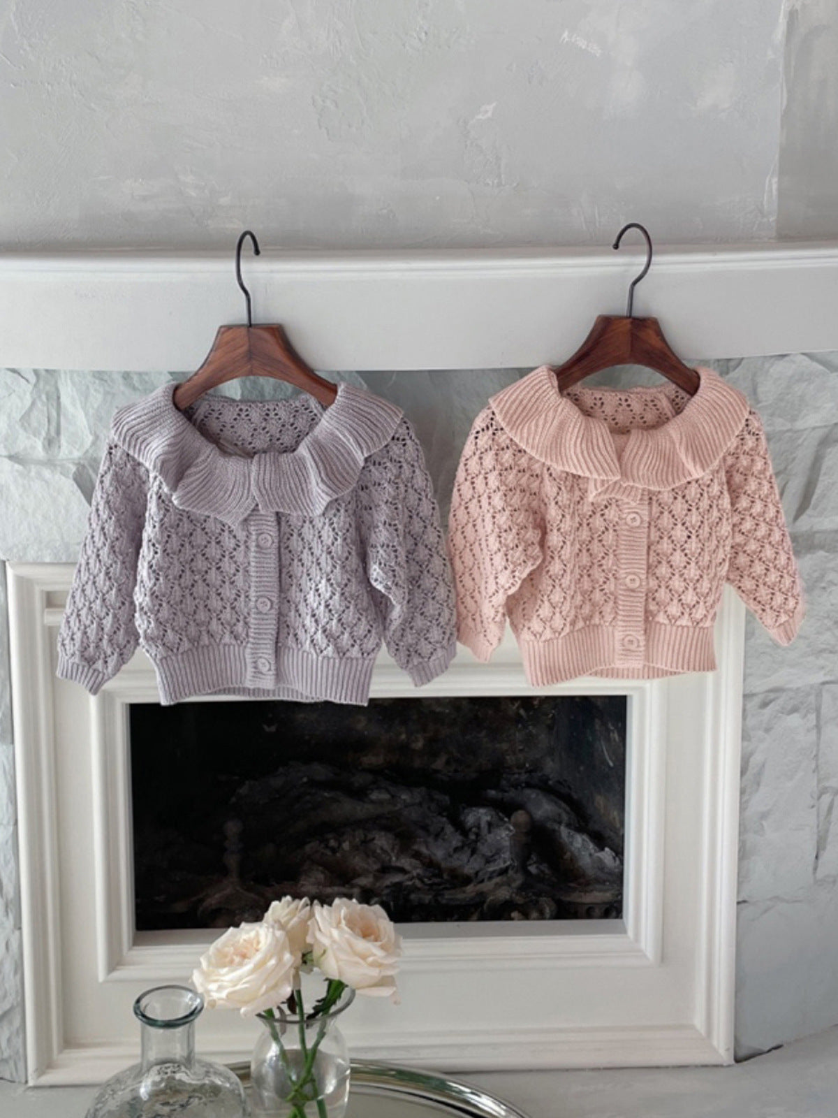フリル襟透かし編みニットカーディガン(ruffle collar openwork knit cardigan)10362511