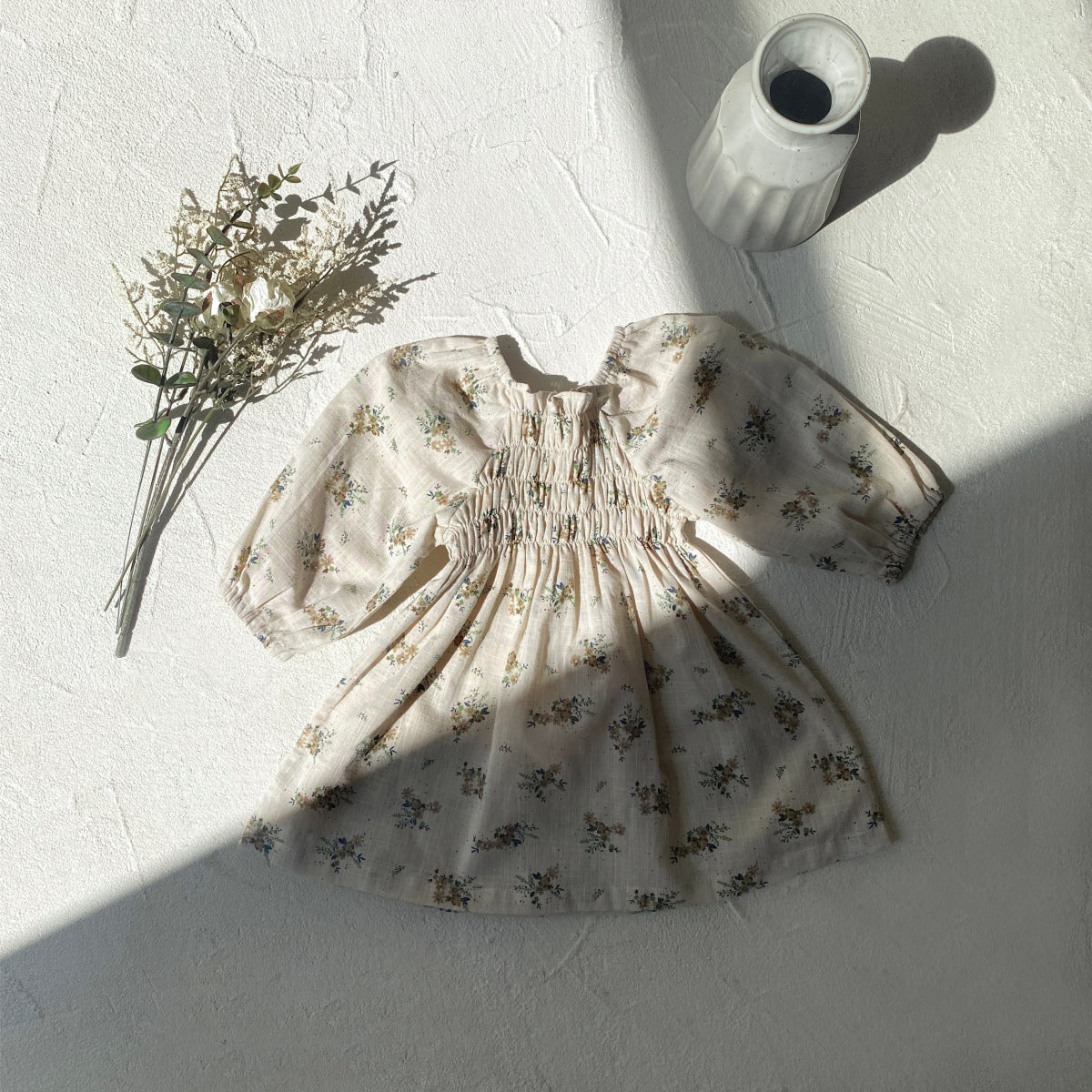 小花柄シャーリーングパフスリーブワンピース(floral shirring puff sleeve dress)10242511