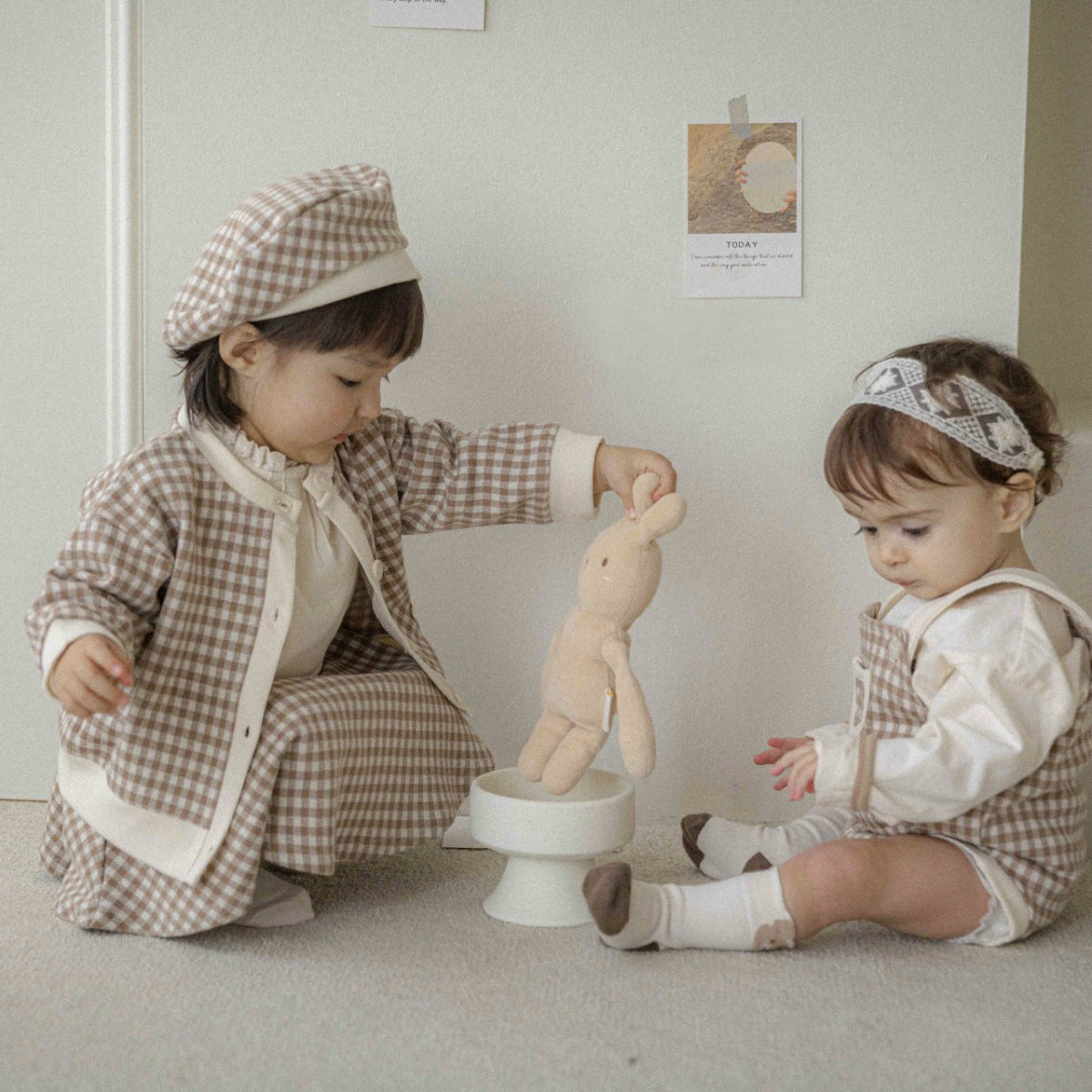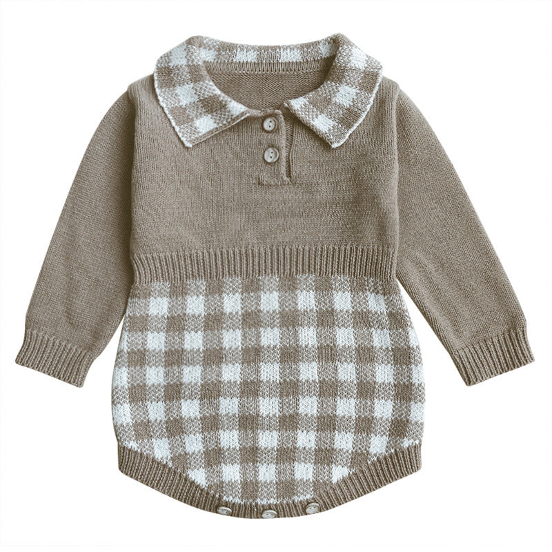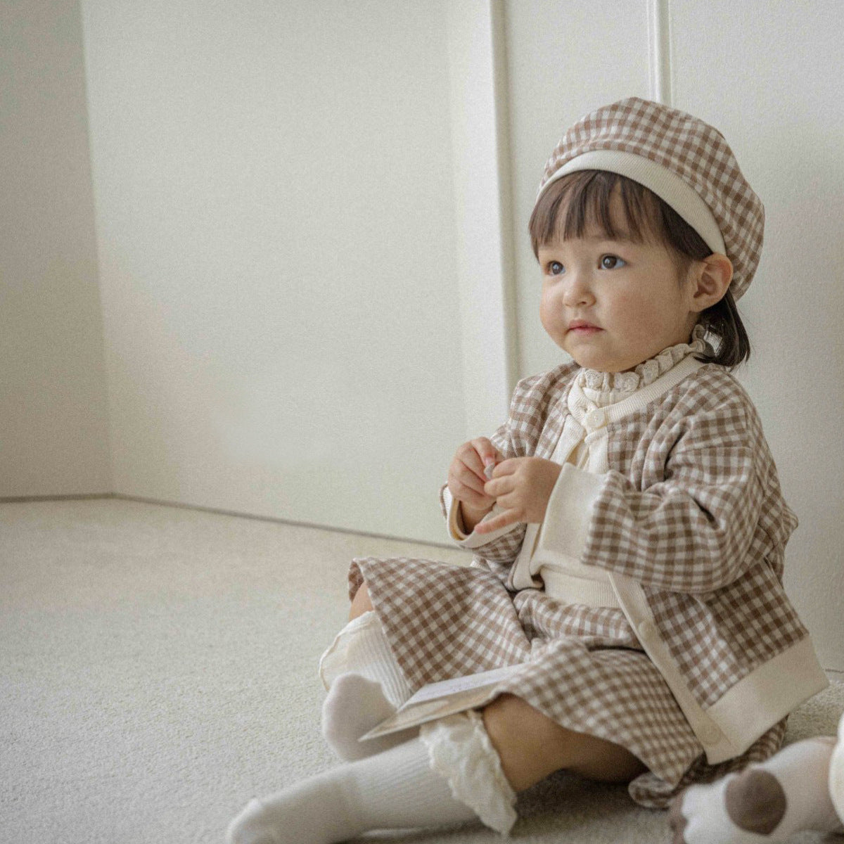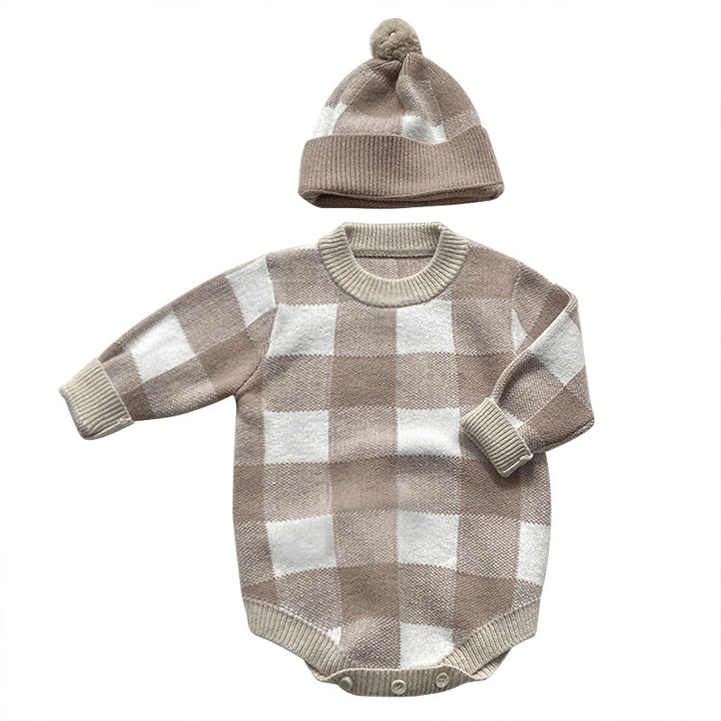 ブロックチェック柄ニットロンパース&帽子セット(block check knit romper & hat set)10392511