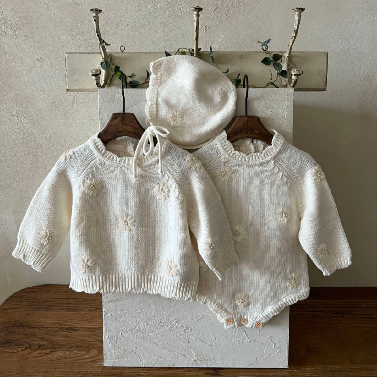 【姉妹コーデ】花柄セーター・ロンパース&帽子セット(floral knit sweater, romper & bonnet set)10452511