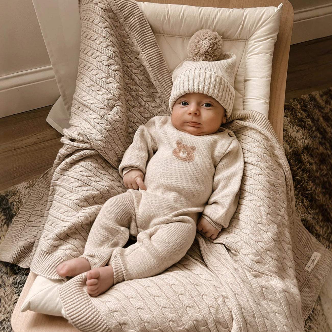 くま刺繍ニットロンパース&ボンネットセット(bear embroidery knit romper & bonnet set)10222511