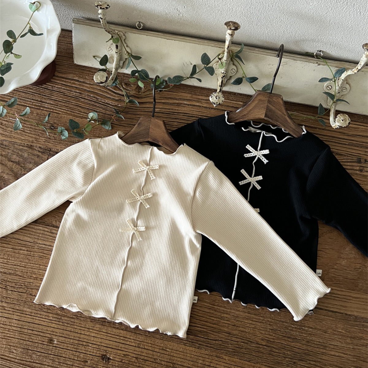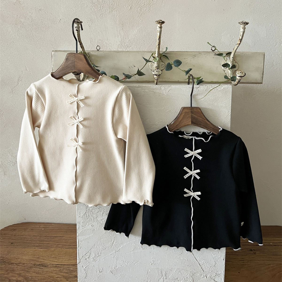 リボン付きリブ編み長袖シャツ(ribbon accented ribbed long sleeve)10352511