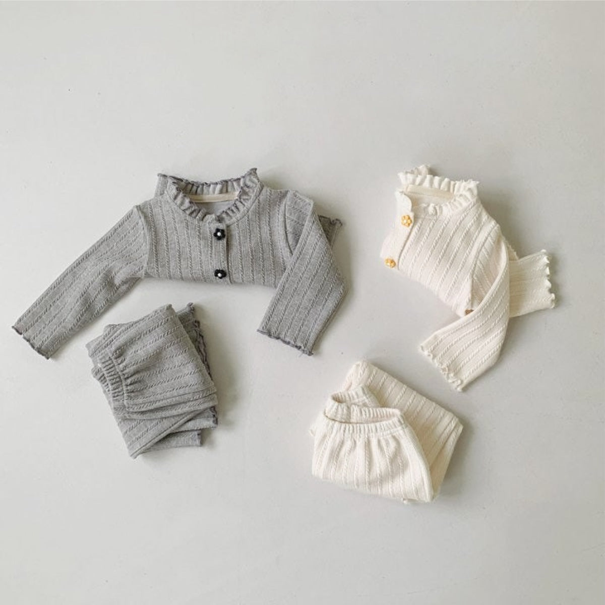 フリルネック花柄ボタンカーディガン&リブパンツセット(ruffle neck cardigan & rib pants set)10122510
