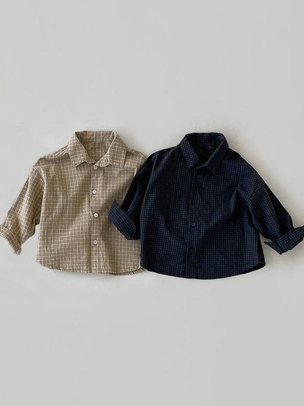 チェック柄刺繍入り長袖シャツ(check pattern embroidered long sleeve shirt)13302511
