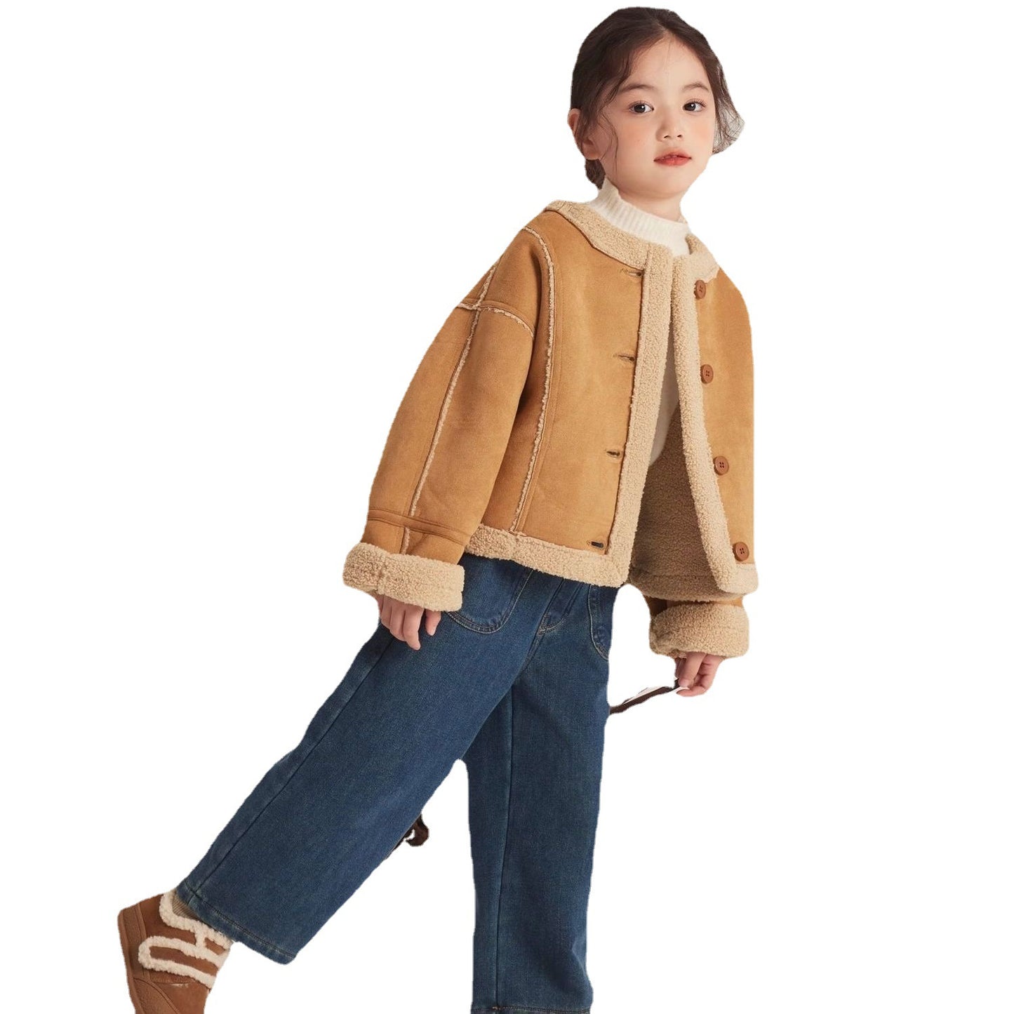 秋冬の防寒にぴったりの、ムートン風ベビー/キッズ用ジャケット。