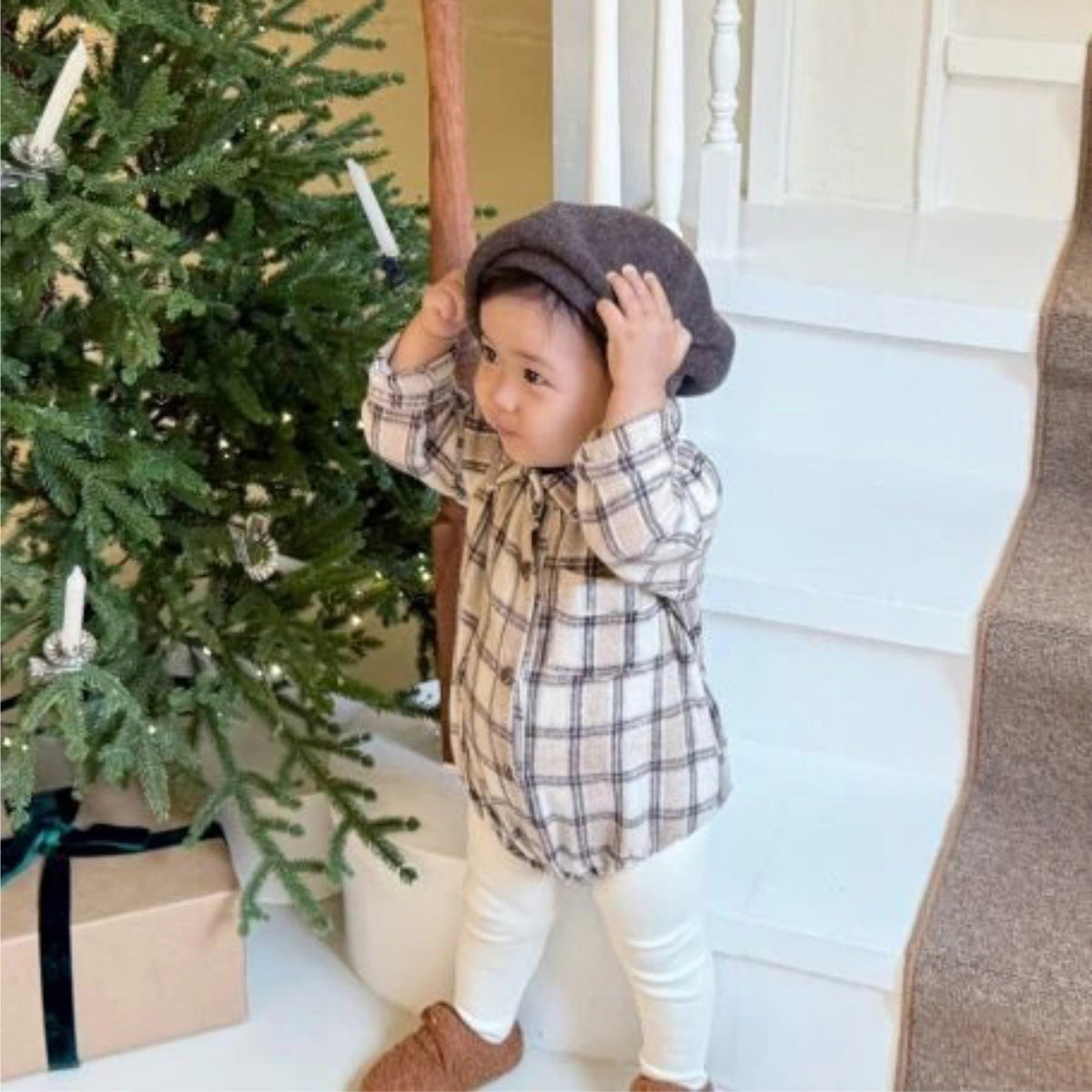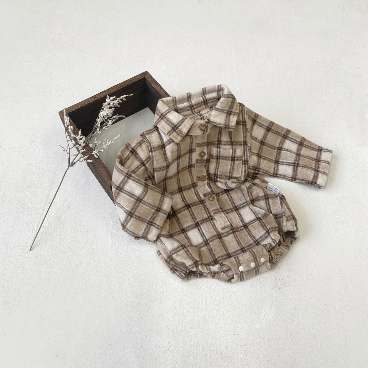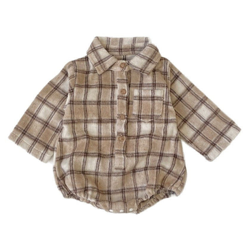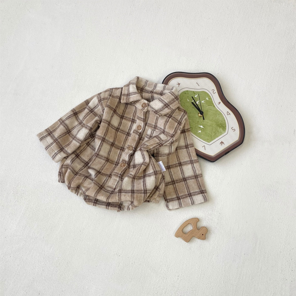 タータンチェック柄フランネルシャツロンパース(tartan plaid flannel shirt romper)15122512